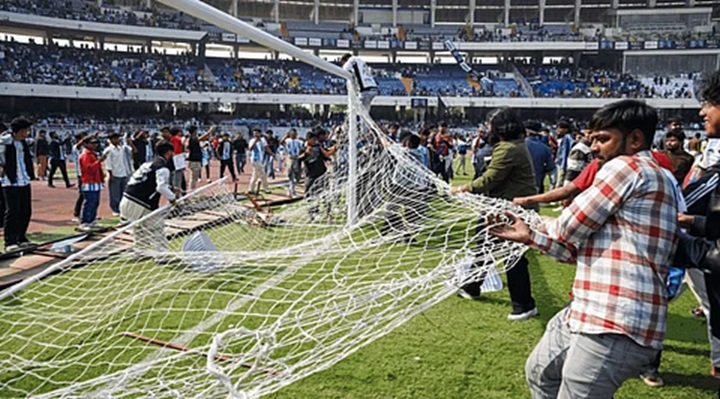 বিশ্ব ফুটবলের মহাতারকা লিওনেল মেসিকে এক নজর দেখতে কলকাতার যুবভারতী ক্রীড়াঙ্গনে উপচে পড়েছিল দর্শক। উপস্থিত ছিলেন বলিউডের কিং খান শাহরুখ খানও। তবে আনন্দঘন সেই আয়োজন মুহূর্তেই রূপ নেয় বিশৃঙ্খলায়। ক্ষুব্ধ দর্শকদের ভাঙচুর শুরু হলে নিরাপত্তাজনিত কারণে দ্রুত স্থান ত্যাগ করেন শাহরুখ। ভারতীয় সংবাদমাধ্যমের প্রতিবেদনে উঠে এসেছে এই তথ্য।